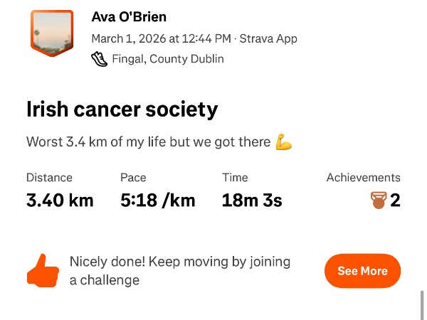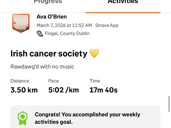 Wednesday 25th MarShare@_avaobrien1 Run my 1st 10km with me for daffodil day 🌼💛 @Irish Cancer Society #daffodilday #irishcancersociety #fundraiser #run #cancerawarness